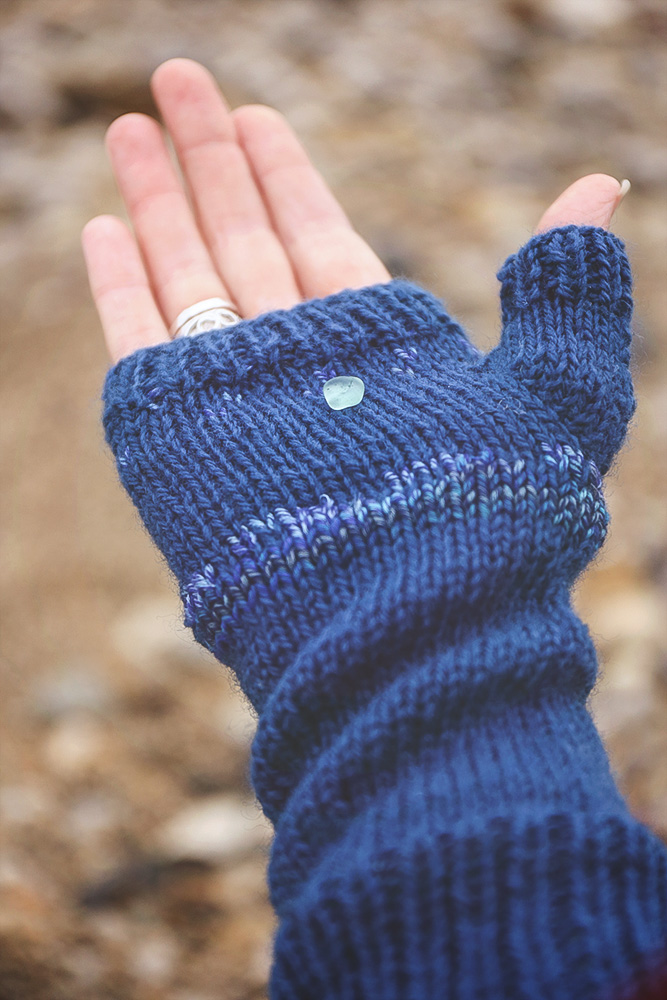 These have been designed to be long enough to keep your wrists warm under your jumper, leave the thumb free for picking things up, though the thumb is still nice and long, and can be worn as mittens or fingerless mittens.